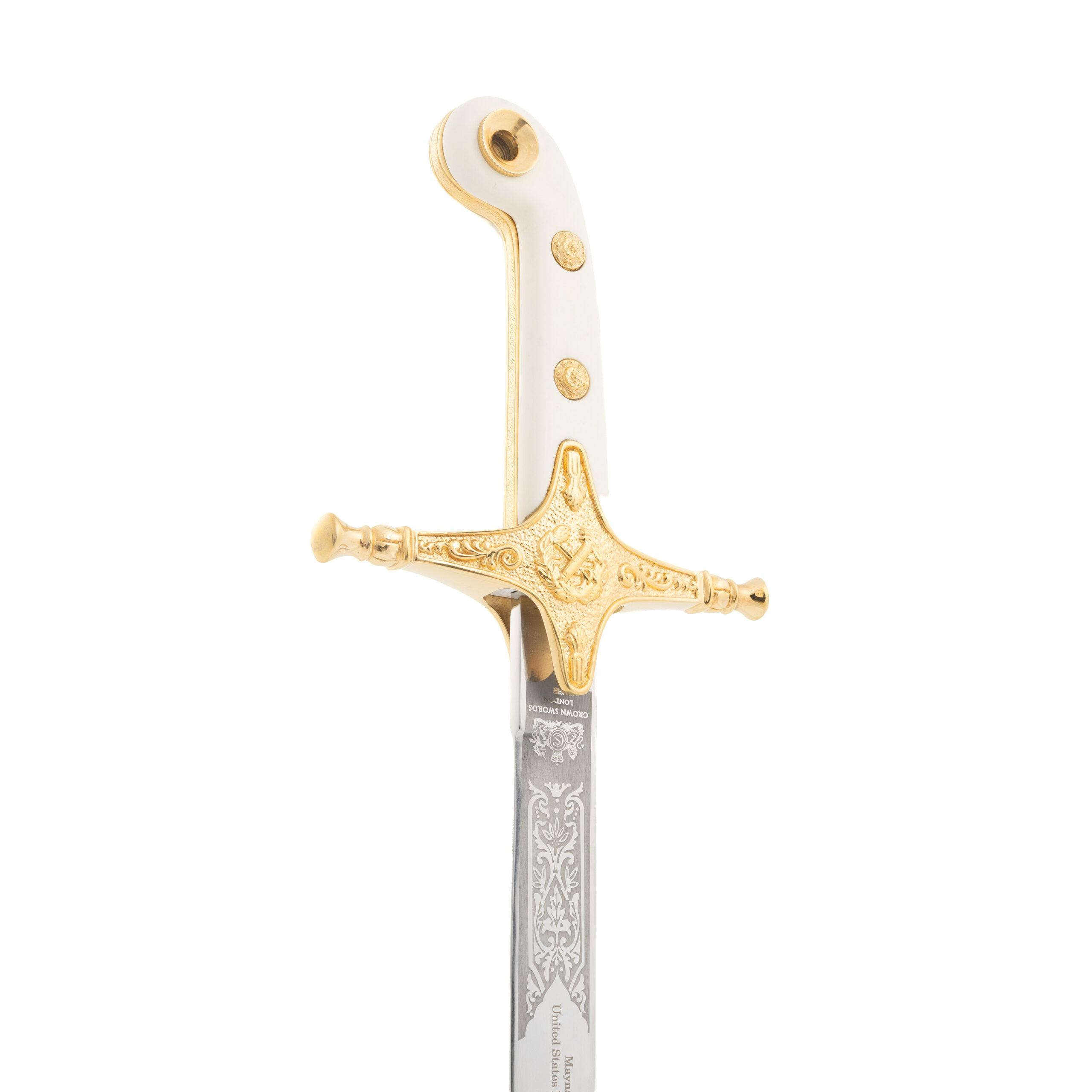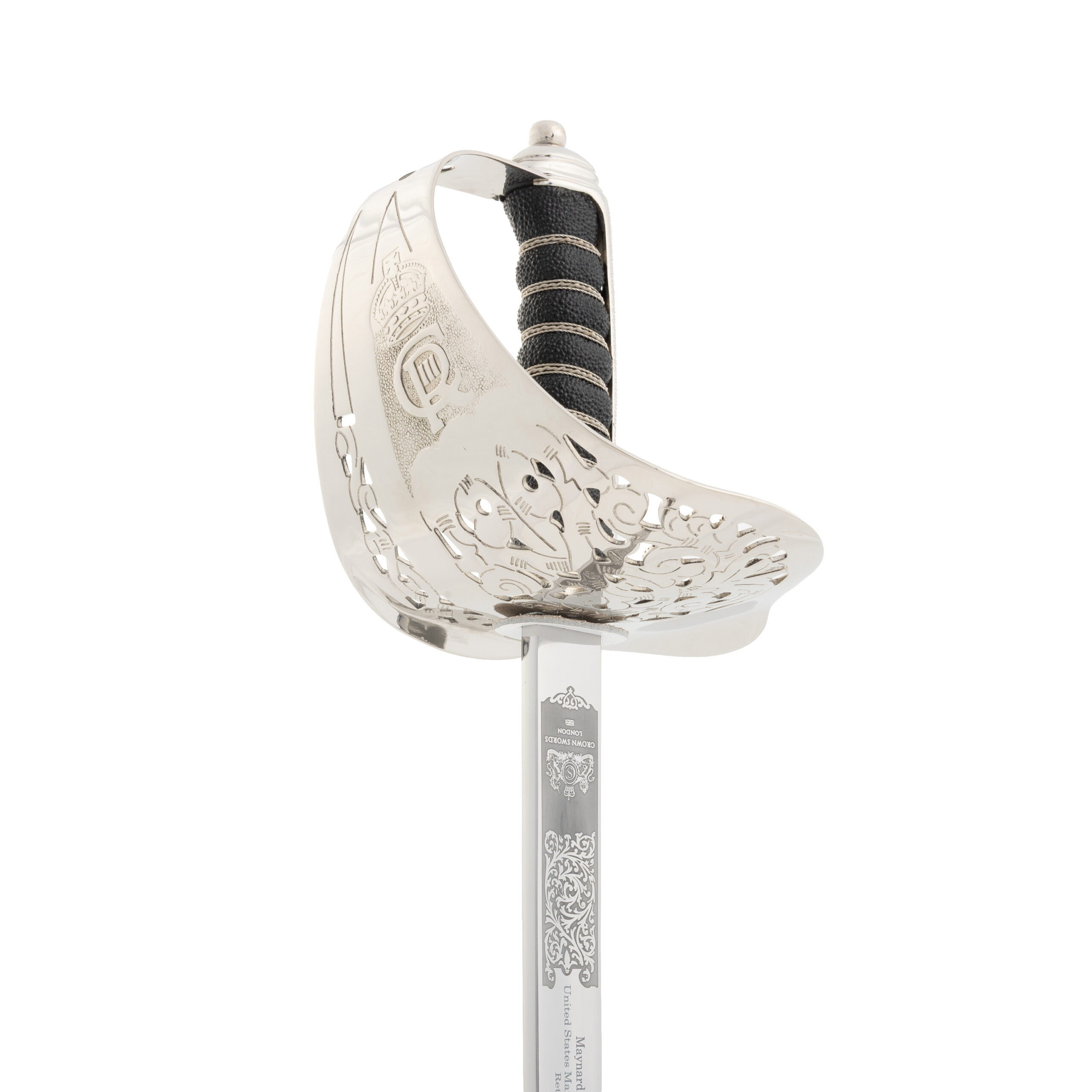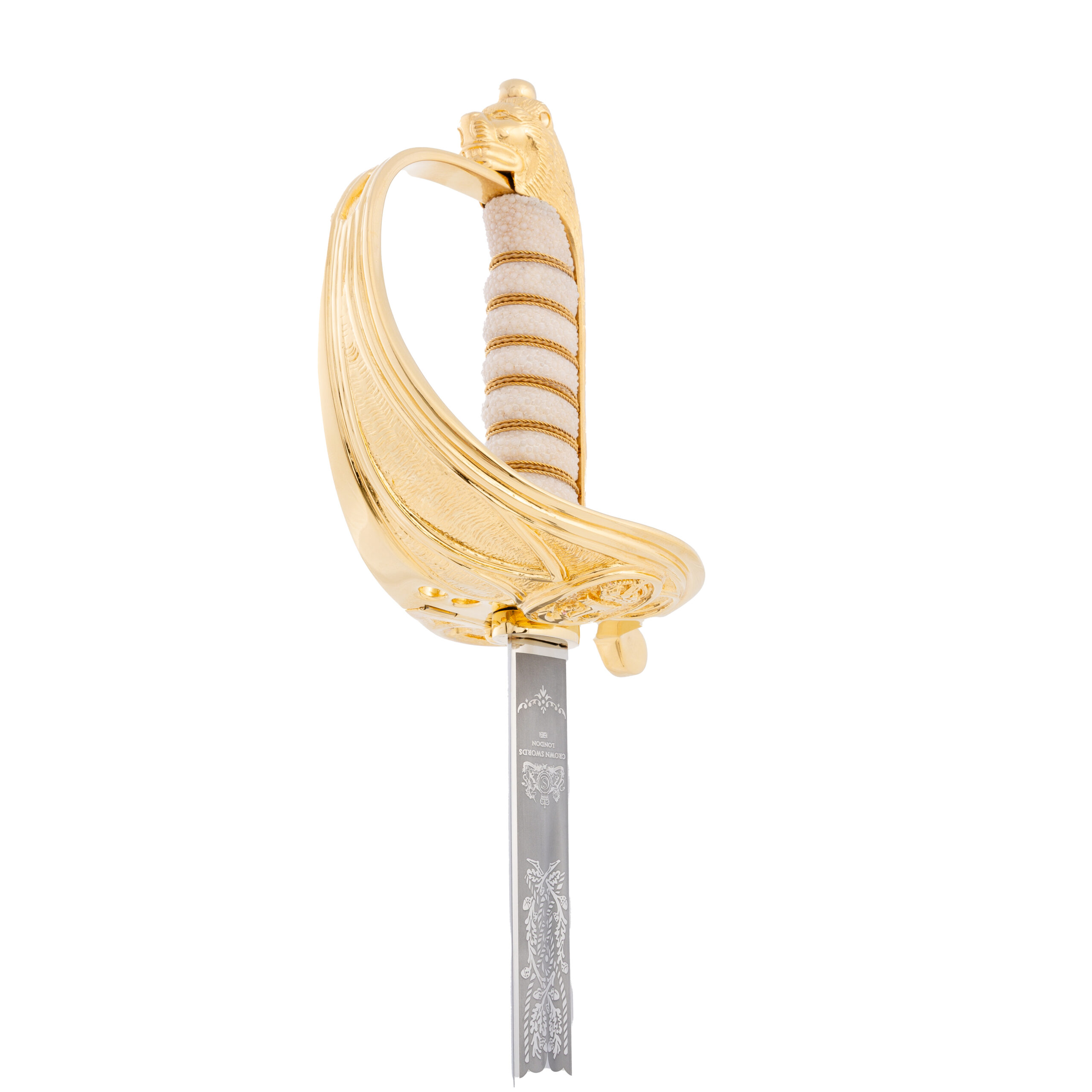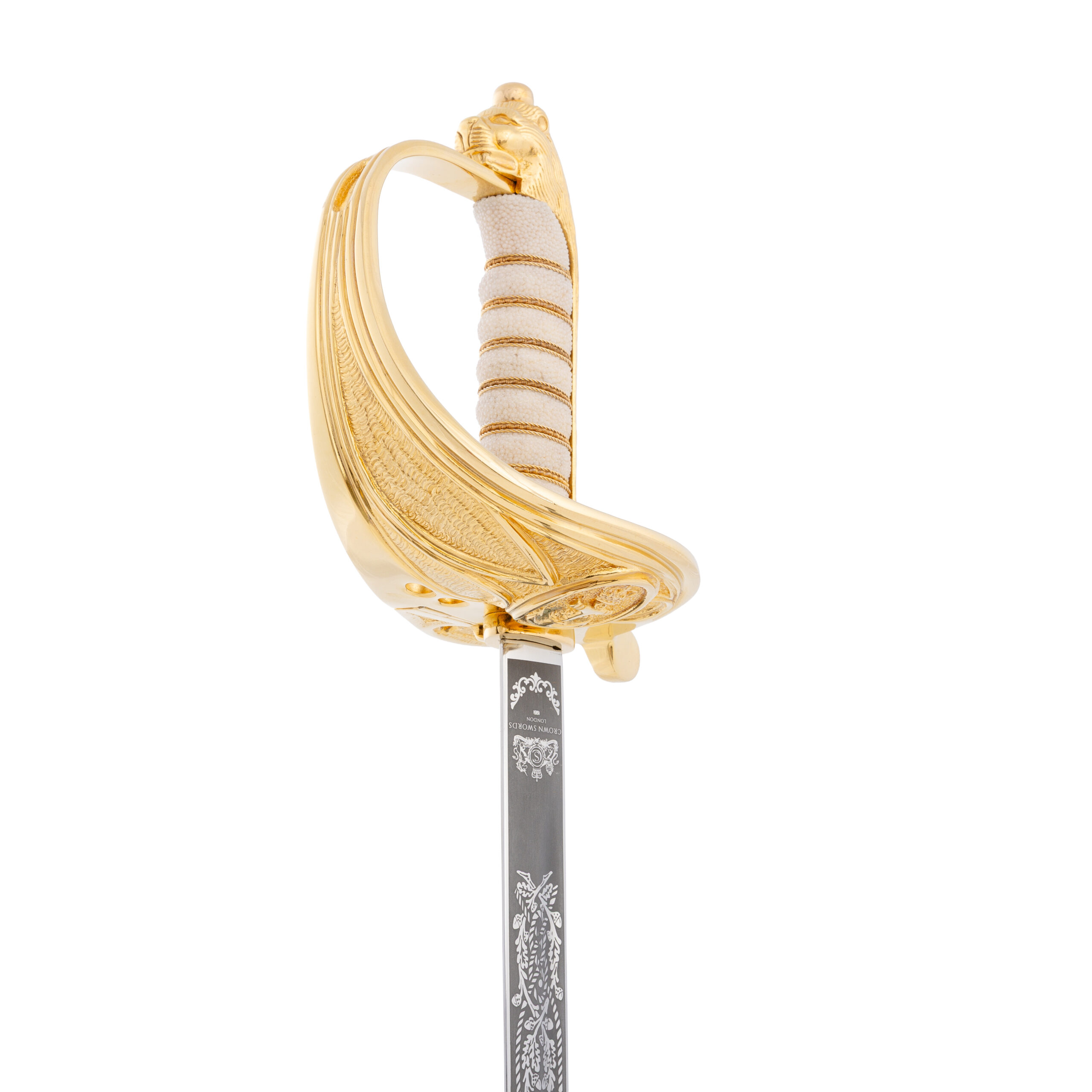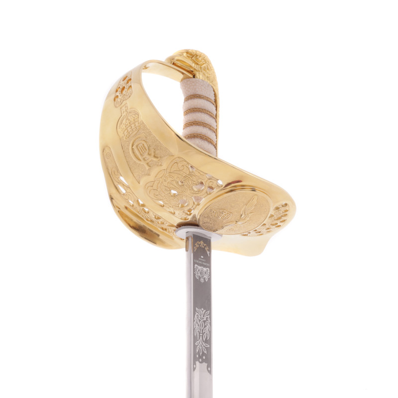 The Prince of Wales, Admiral of the Fleet, presents the Queen's sword to Sub Lieutenant Thomas Handley Royal Navy, the Officers Association Prize Winner, as he presides over the Lord High Admiral's Divisions at Britannia Royal Naval College, Dartmouth. Pi