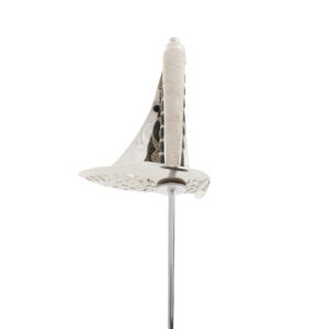 Last revised in 1897 the Royal Bahrain Infantry Officer’s Sword is based on the 1897 Infantry Pattern Officers Sword. The straight high carbon steel blade is finely etched with the regimental crest. Its three-quarter basket- hilt is defined by a black ray-skin bound grip and silver-plated with copper wire.
